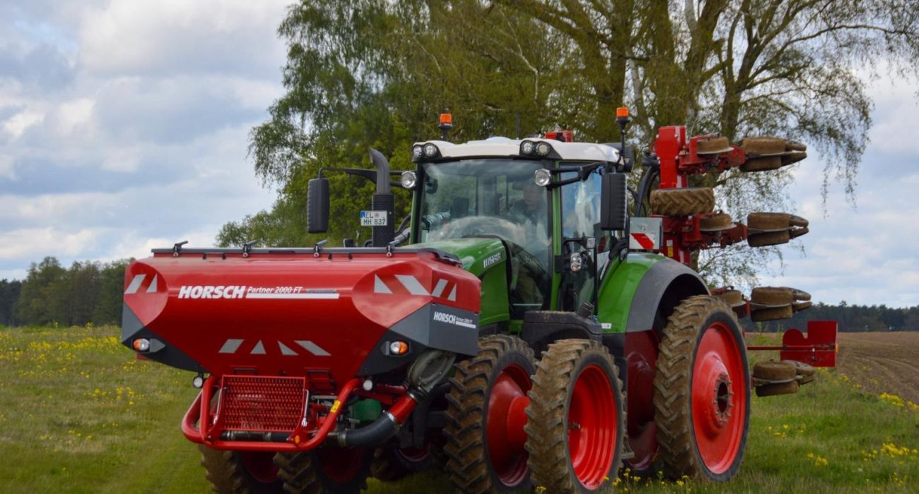 Gedrillt wird mit einem Fendt 828 mit Spezialbereifung und einer 8 Reihe Horsch Maestro RX, die neue Einzelkorndrille vom Lohnunternehmen Holtgers. Durch die Spezialbereifung laufen die Reifen zwischen den Saatreihen um die Bodenverdichtung auf den Reihen zu verhindern. Dies ist optimal für den Aufwuchs der Maisreihen.