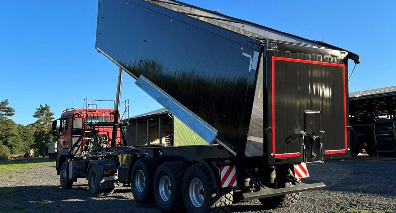 Unser neue Maschine dient für den Transport von allen Schüttgütern, bei uns überwiegend von Getreide, Silo- und Körnermais während der Erntezeit. Durch die breiten und somit bodenschonenden Reifen kann die Mulde mit dem LKW oder dem Schlepper zum Abfahren direkt auf dem Feld eingesetzt werden.